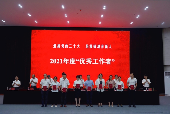 校党委书记陈向军发表讲话。他代表学校党委、行政,向辛苦耕耘在教学科研、服务管理岗位上的全体教职工致以节日的问候,向受到表彰的先进集体和个人表示热烈的祝贺,向从教满30周年的教职工和离退休教职工为学校改革发展所做出的贡献表示衷心的感谢,向新加入黄师大家庭的教师们表示诚挚的欢迎。陈向军指出,今年是党的二十大召开之年,是向第二个百年奋斗目标进军新征程的重要一年,为今年的教师节赋予了特殊意义。教育部将今年教师节的主题确定为“迎接党的二十大,培根铸魂育新人”,这个主题内涵丰富,既体现了广大教师承载的光荣历史使命,又体现了党和人民对教师的时代重托。